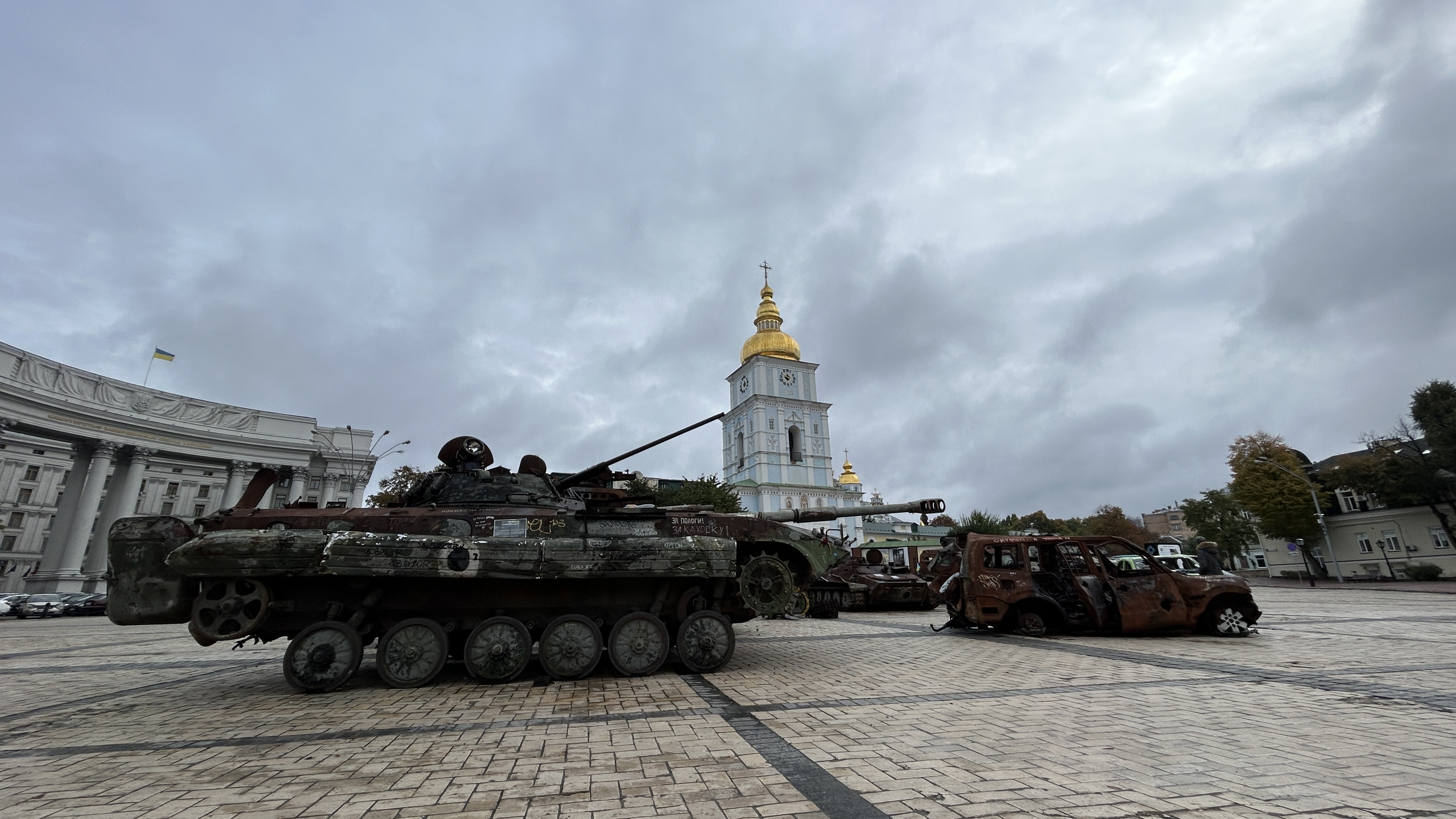 Men man hører krigen. Både gjennom gjentatte alarmer fra appen som varsler når det er raketter og droner på vei fra russisk side, og når de fysiske sirenene starter den umiskjennelige runden med kraftige advarsler om at noe er på gang.