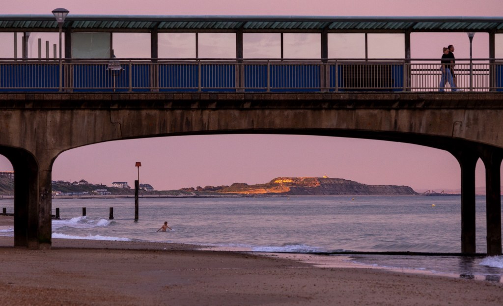 Øst for Bournemouth Pier i Sør-England, ligger mindre kjente, men fantastiske og fredfulle Boscombe Pier. Foto fra sommeren 2024.